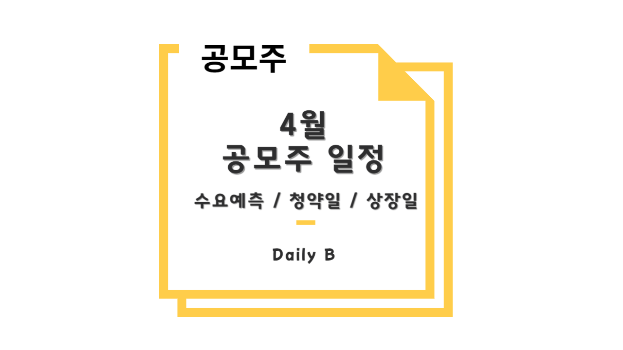 안녕하세요 DailyB_ 입니다 😌 2025년 4월 공모주 일정을 한번에 알아보겠습니다 :) 수요예측 / 공모청약 / 상장일  매 주, 매 월 어떤 기업이 상장을 준비하고 언제 청약을 하는지정리를해서 올리려고 합니다! 공모주가 큰 수익을 바라고 하는 것은 아니지만,소소하게 커피한잔 정도의 수익을 같이 벌어 나가셨으면 좋겠습니다🙂 같이 커피한잔 하실 분들 구독 환영합니다 ☕
